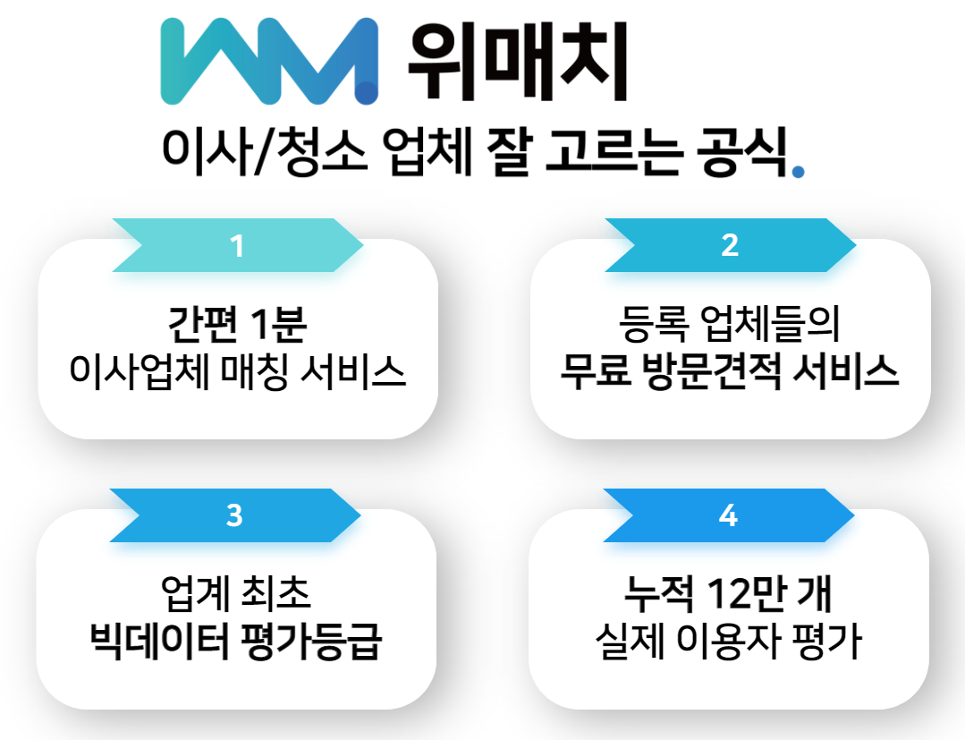 ✔ 위매치다이사에 등록된 이사업체와의 무료 방문견적 서비스 이용 가능!